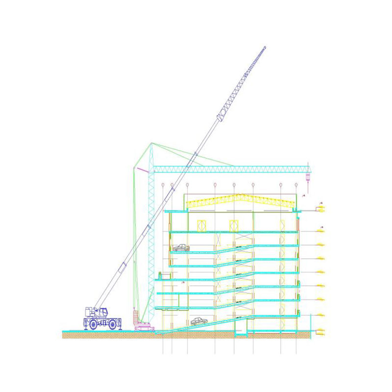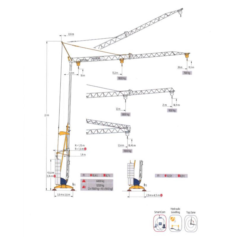 ตัวเครนสามารถเข้าไปในช่องแคบและทำงานได้ครอบคลุมพื้นที่การยกของภายในพื้นที่ก่อสร้างได้