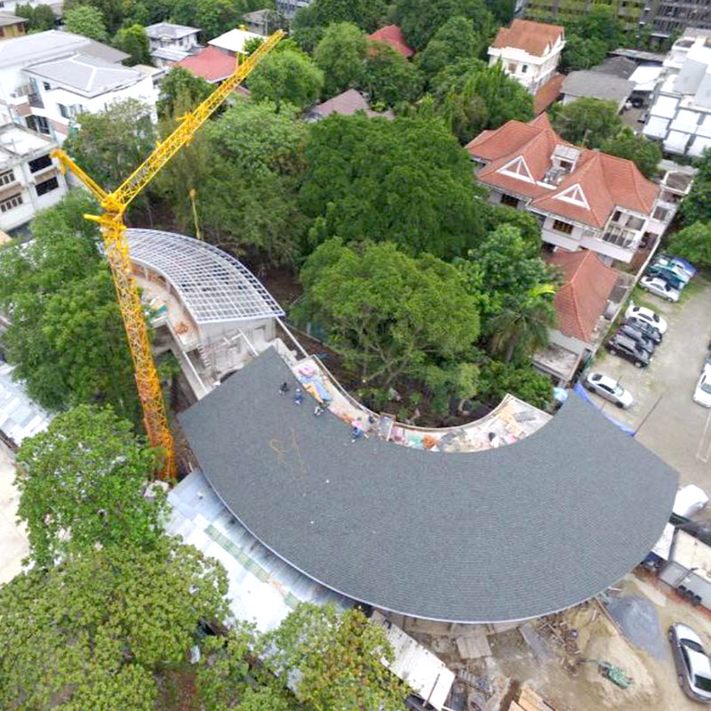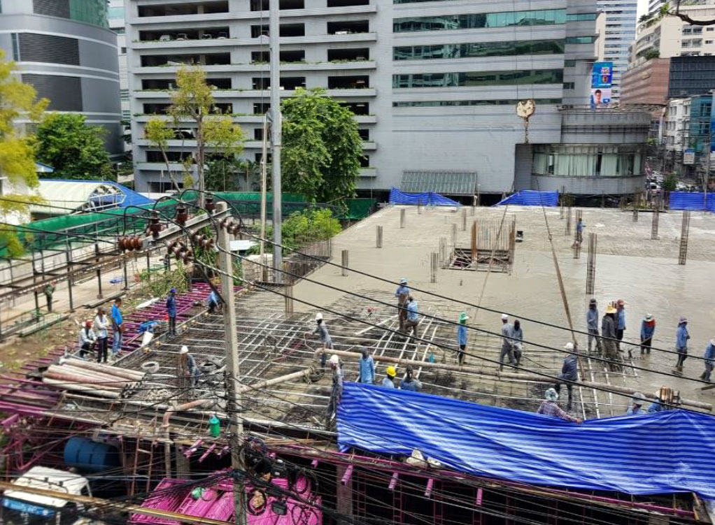 โครงการในภาพประกอบมีพื้นที่จำกัด จึงเว้าอาคารให้เครนยืนทำงานแล้วหล่อพื้นปิดทีหลัง เนื่องจากมีพื้นที่จำกัด