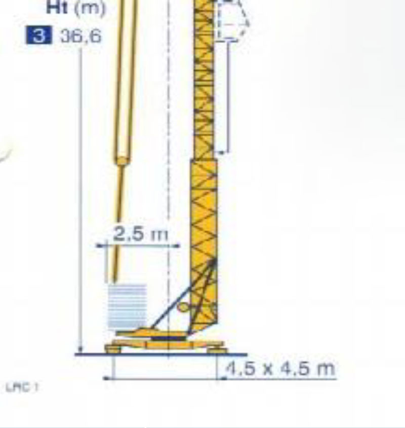 • แขนยาว 40 ม. ความสูง 21 ม. สูงสุด 30 ม.